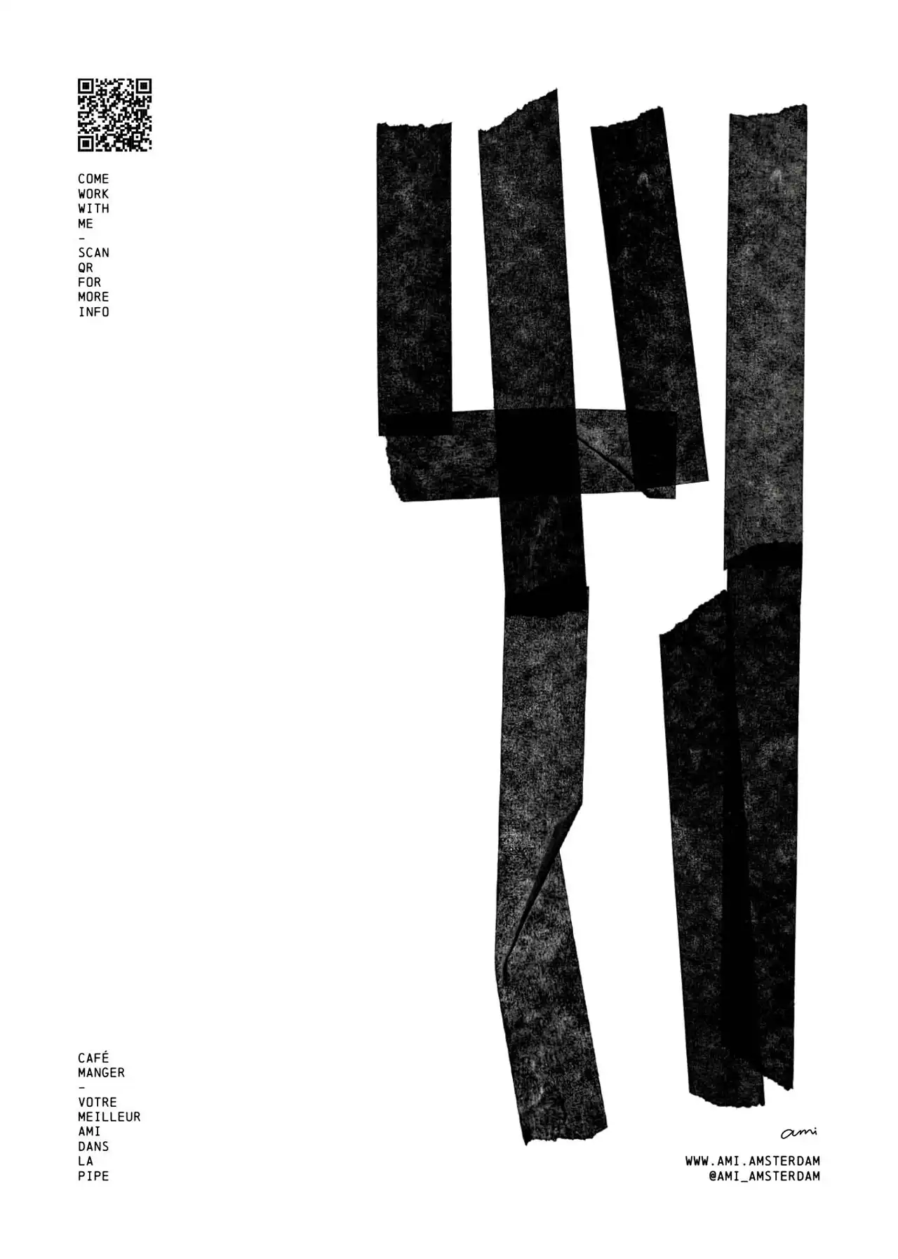 As part of AMI’s brand identity, we created a series of illustrations—all built from strips of tape. Sharp, spontaneous & a little messy in the best way. The look is contemporary but full of character: layered shapes, clean cuts and a few fine-line variations to keep it alive.